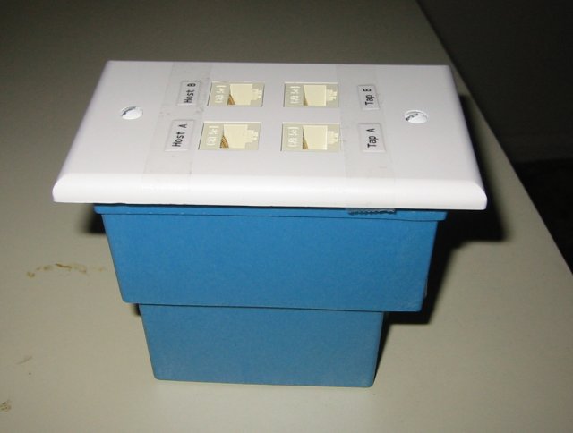 Strip the cat 5 cable and untwist all the individual wires. Place a jack in the upper left spot (from the front) in the faceplate. This is the Host A jack. Punch down all the wires for this jack with the little punch tool that came with it.